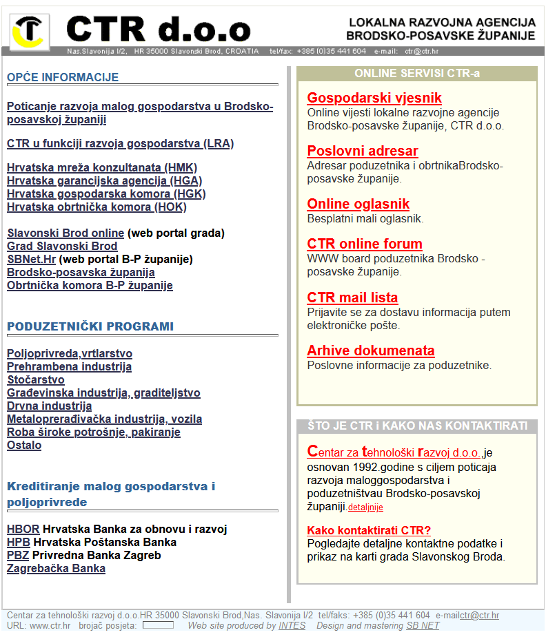 SLAVONSKI BROD - CTR Centar za tehnološki razvoj d.o.o., lokalna razvojna agencija. Produkcija INTES, M. Kljajin, design&mastering SB NET, Ž. Klindžić